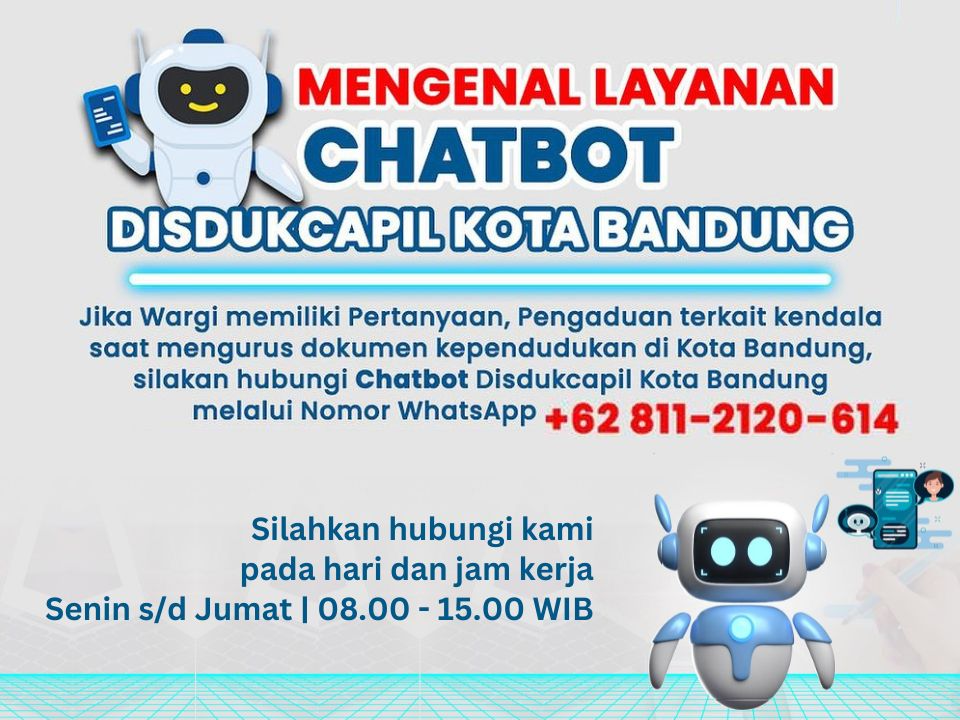 Jika Wargi memiliki pertanyaan, pengaduan terkait kendala saat mengurus dokumen kependudukan di Kota jambi, silakan hubungi Chatbot Disdukcapil Kota jambi melalui Nomor Whatsapp +62 811-2120-614 Silahkan Hubungi Kami selama hari dan Jam kerja (Senin-Jumat 08.00 - 15.00 WIB)